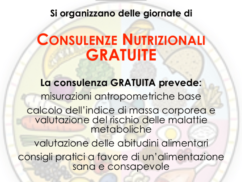 Si organizzano delle giornate di Consulenze Nutrizionali gratuite